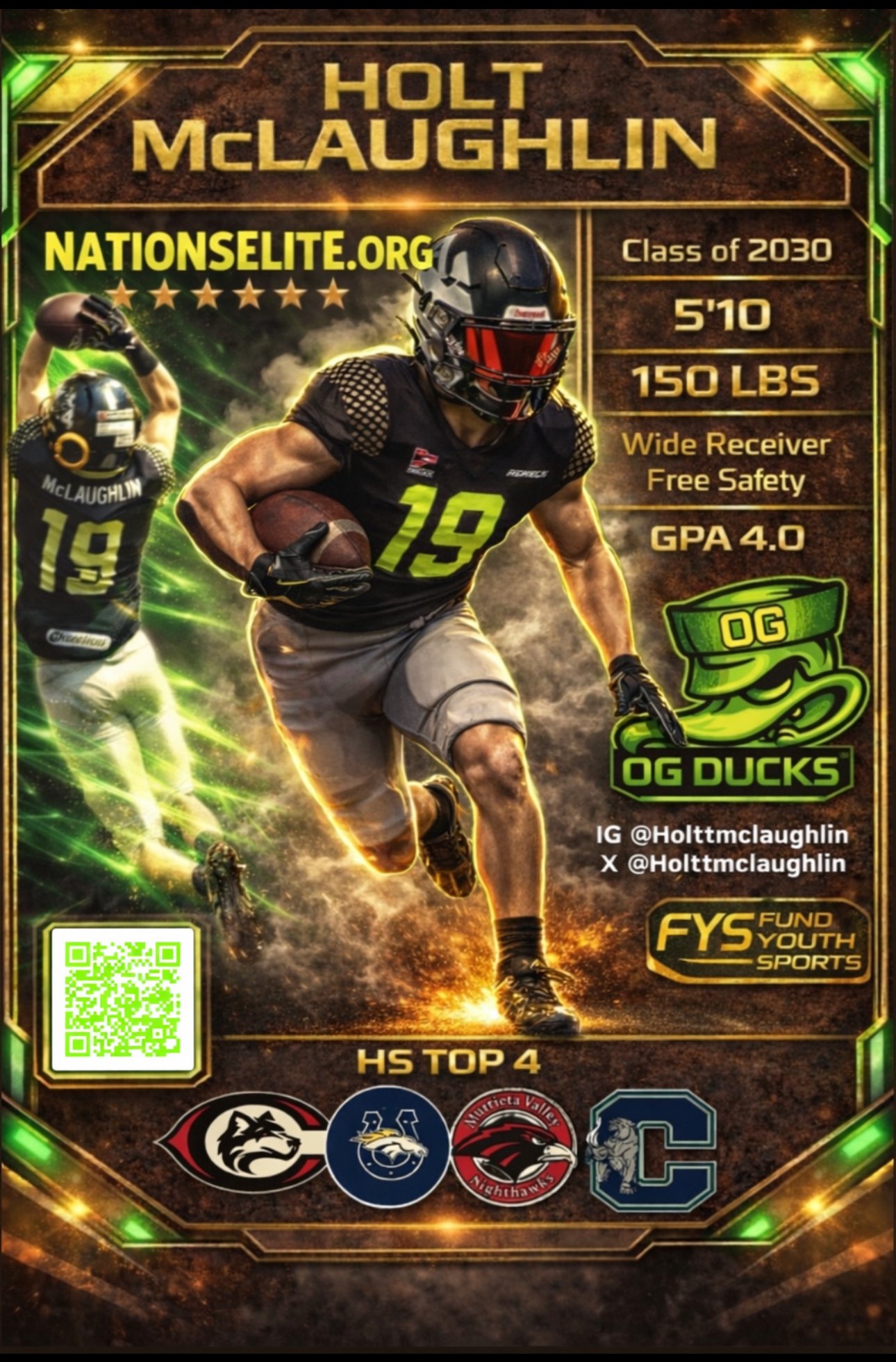 Experience the Power of Showcasing your Skills and Achievements with our Digital Highlights DigiCard. This Unique Platform Consolidates your Most Impressive Game, Practices, Performance Statistics and Action-Packed Photographs into a Captivating Presentation. With a Personalized QR-Code, your Highlights are easily accessible for Coaches, Recruiters, Friends and Family to View and Evaluate your Journey.